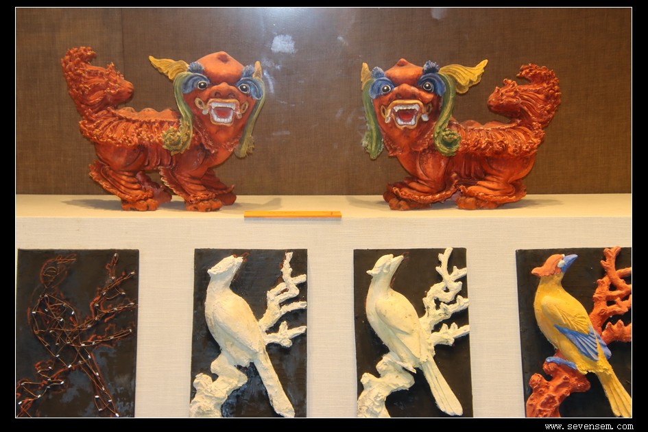 灰塑、砖雕的代表作也一一亮相,色彩艳丽的灰塑花鸟、构图精巧的砖雕门楼片段,共同构成了岭南工艺的全景图。
