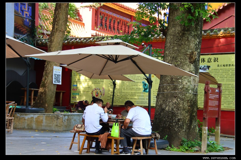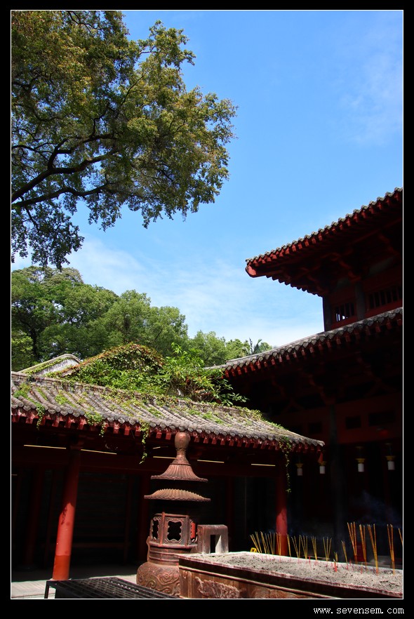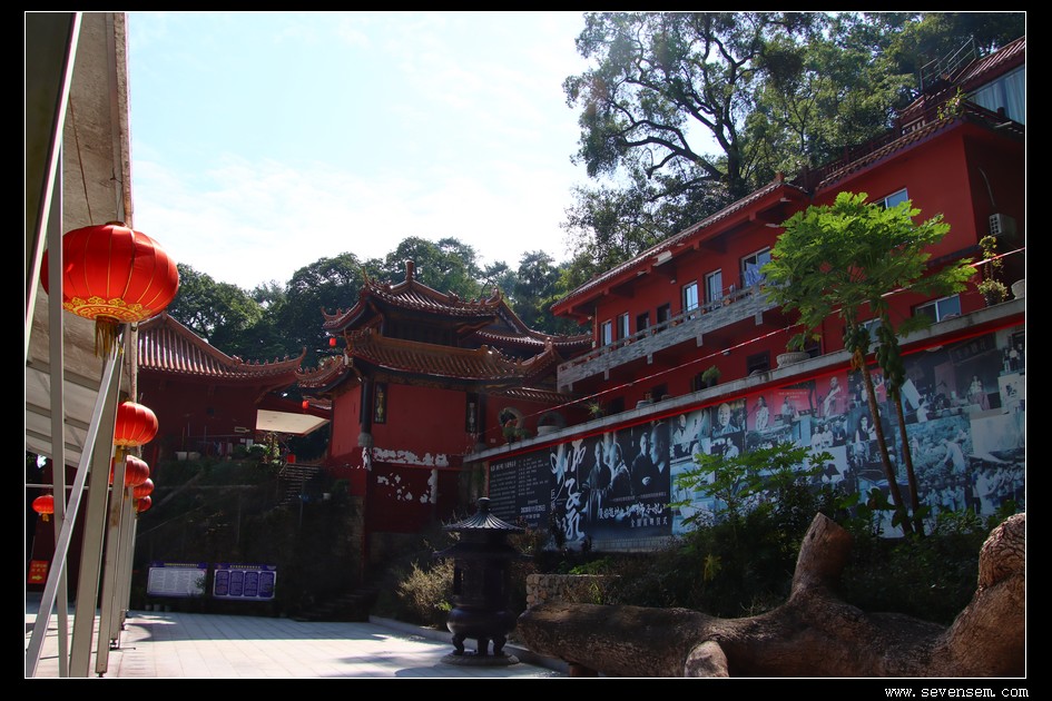 寺内的千年古榕枝繁叶茂,树根盘根错节扎入岩石,仿佛在诉说着这座山的千年故事。