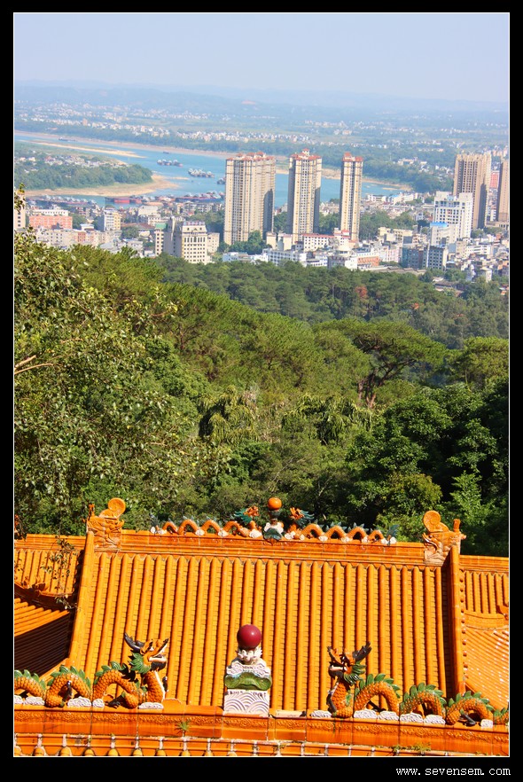 站在寺前的观景台远眺,桂平城区的轮廓在薄雾中舒展,浔江如一条碧绿的丝带环绕其间,山水相依的画卷美得让人移不开眼。