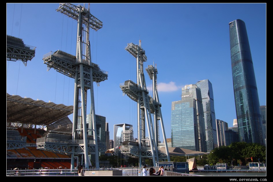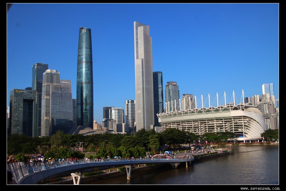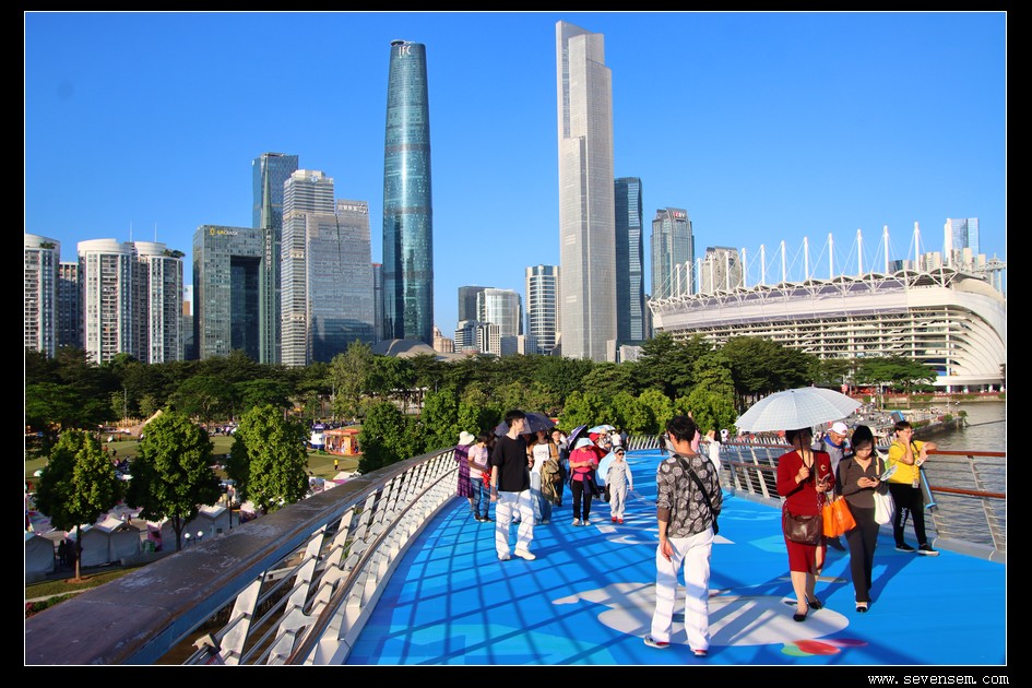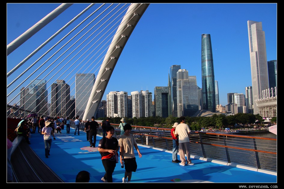 旁边的海心桥也是好机位,这里可以步行前往广州塔,周边的景点可以打发一整日和一整晚。