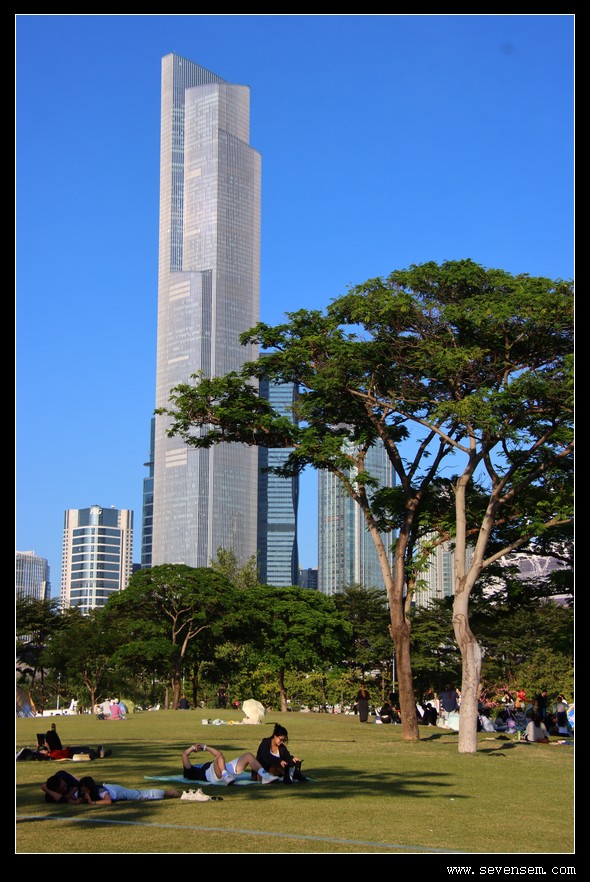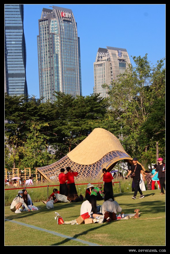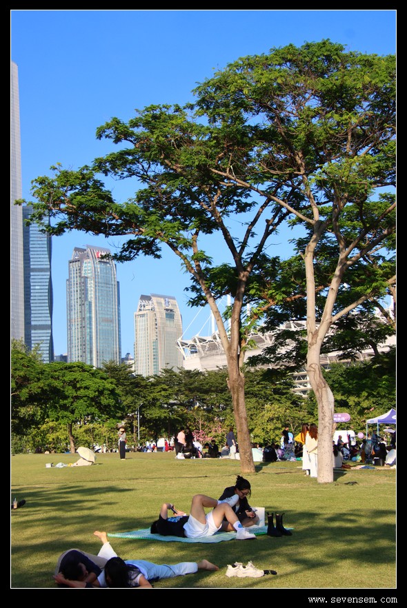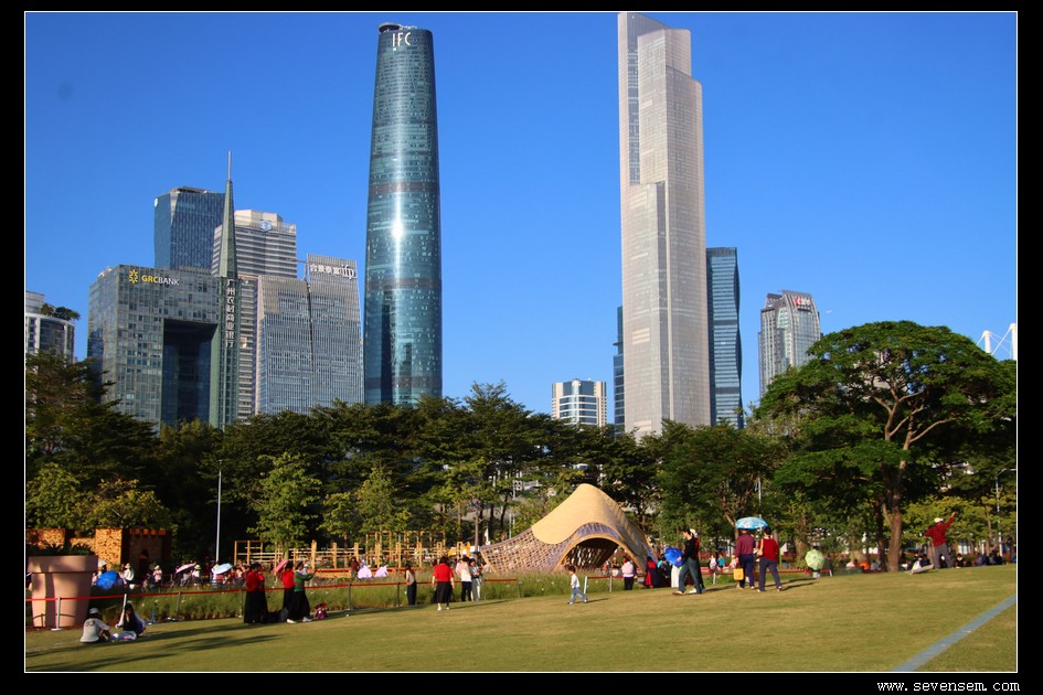 从海心沙进入二沙岛宏城广场前,会经过二沙岛艺术公园,这里的大草坪非常值得一来。