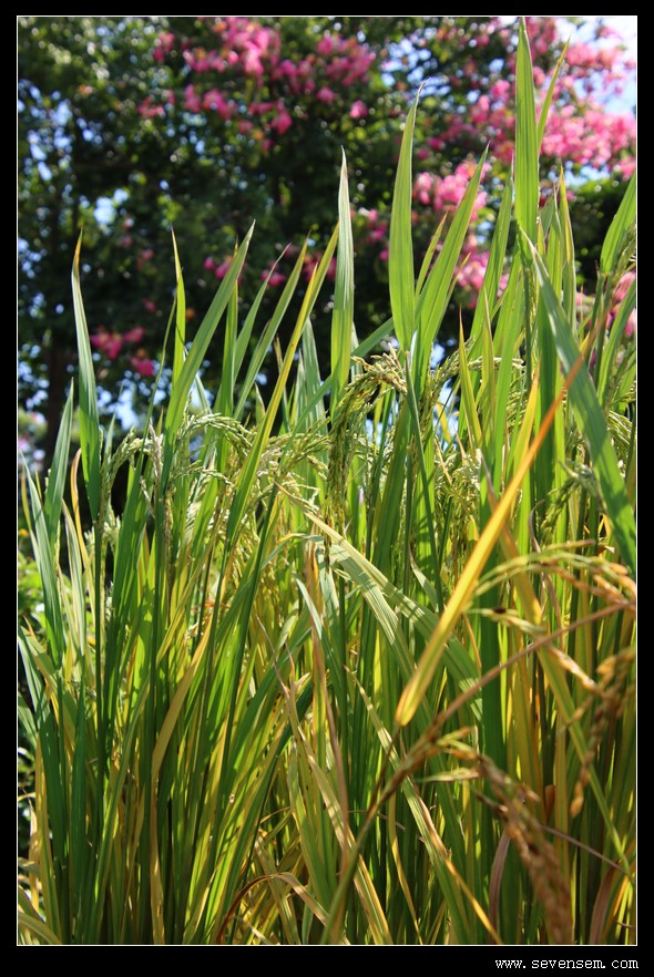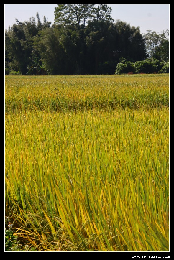 中午烈光线洒在稻穗上,逆光对比强烈,超出片,如果有个女妹子一起来就好了,肯定发丝都裹着稻香的温柔。