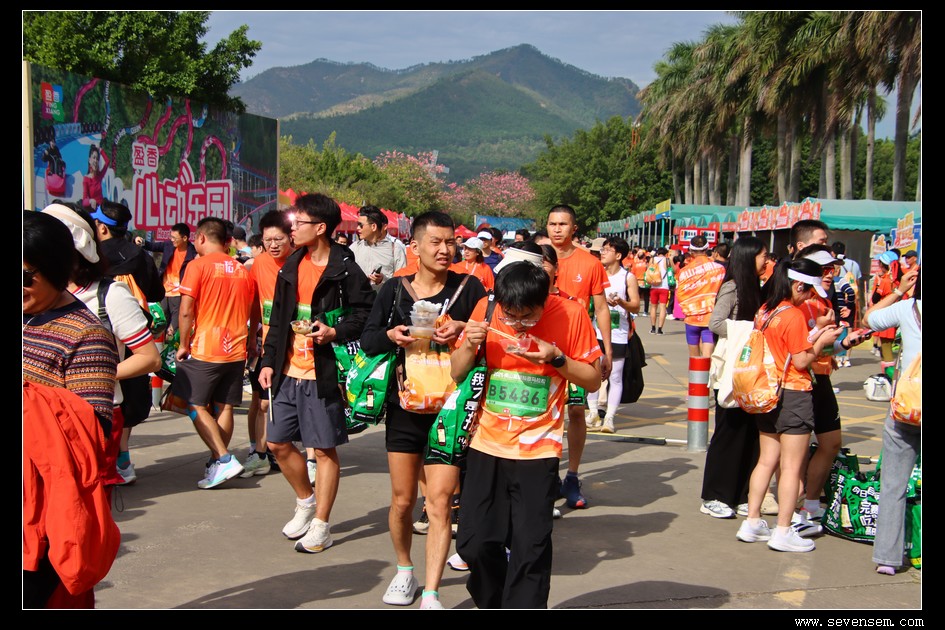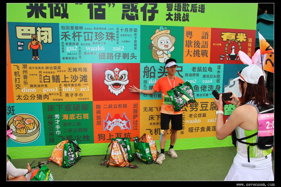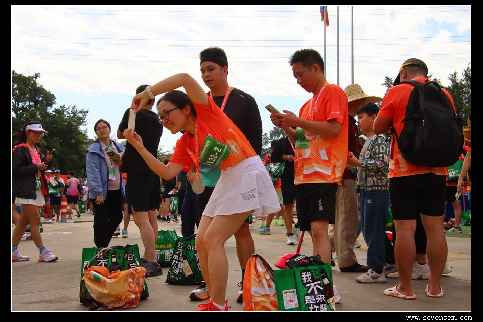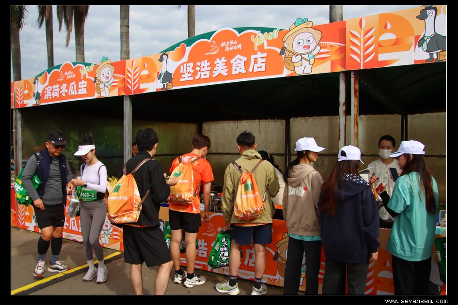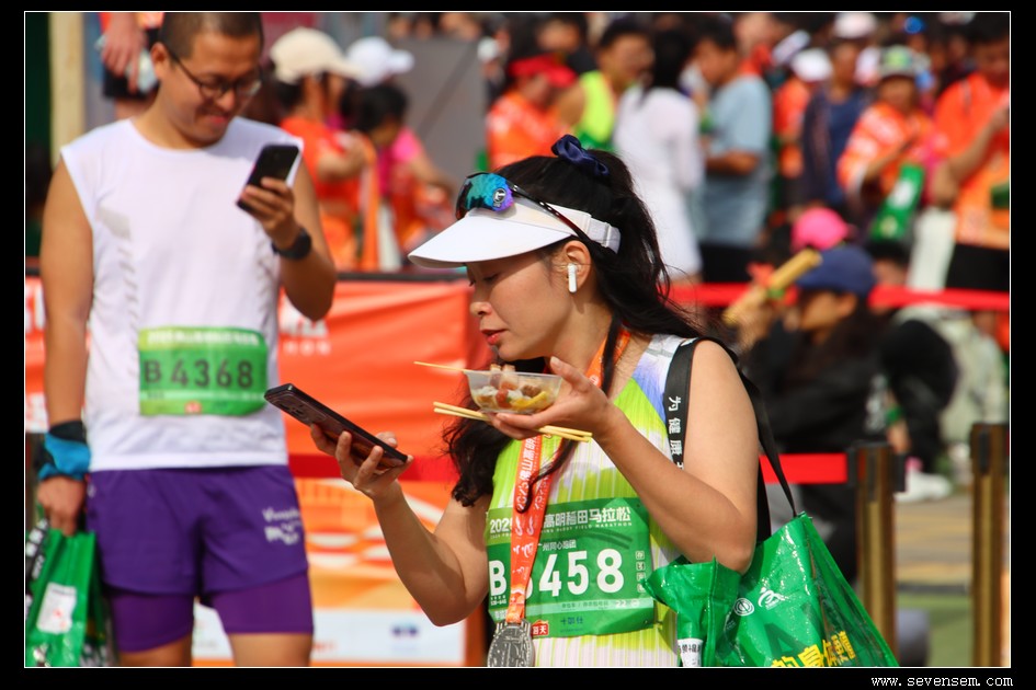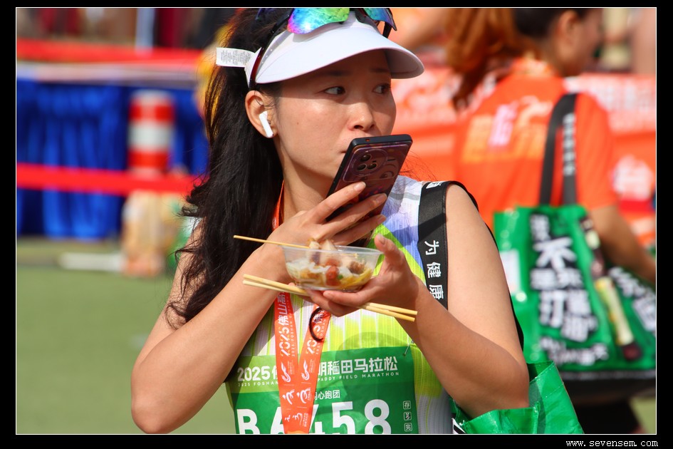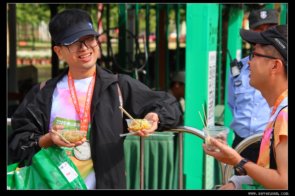 秋风渐远,稻香不散,高明稻田马拉松的故事还在继续。在背景墙旁边吃着牛肉濑粉,一边睇着运动相互帮忙拍摄,来一个耶,笑容非常感染人,这次赛事非常让人愉悦。