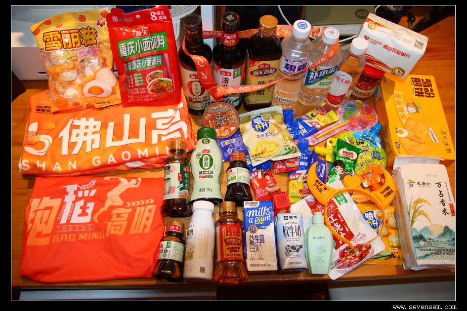 回到家,拎了一堆礼品回来,这也够夸张的了。