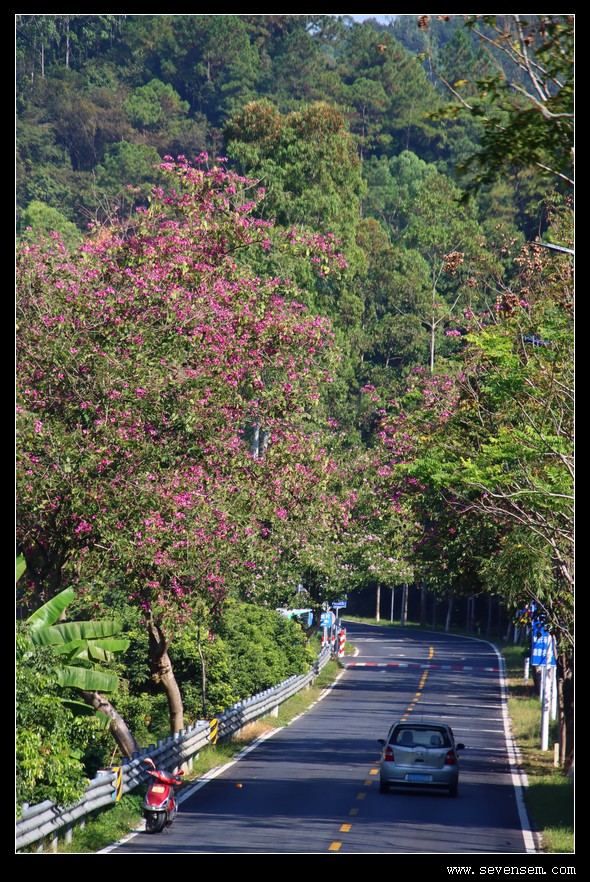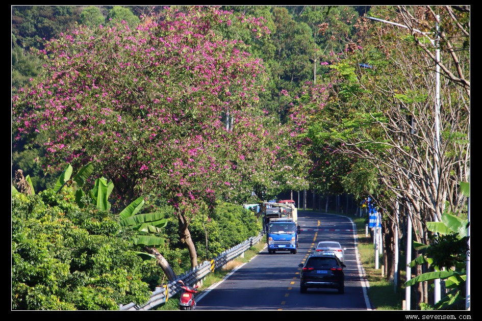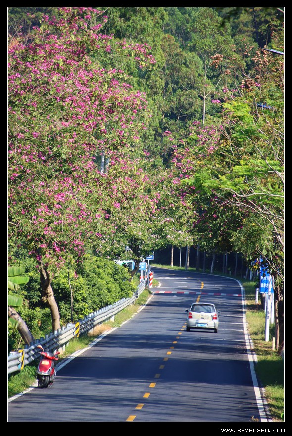 从三星村出翻来熟悉的S380正福线,两旁好多紫荆花。