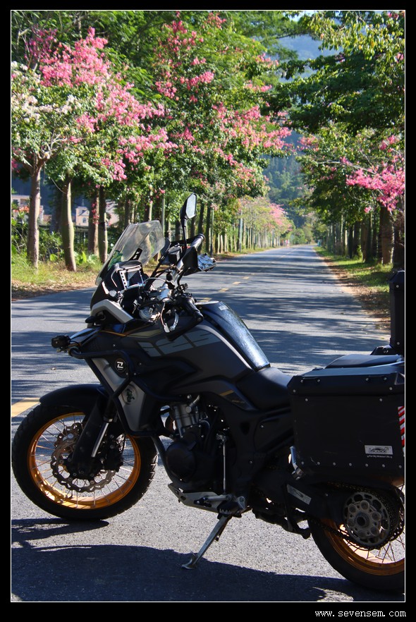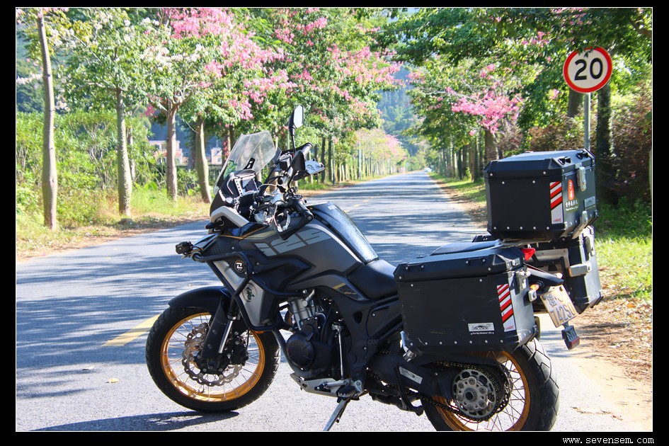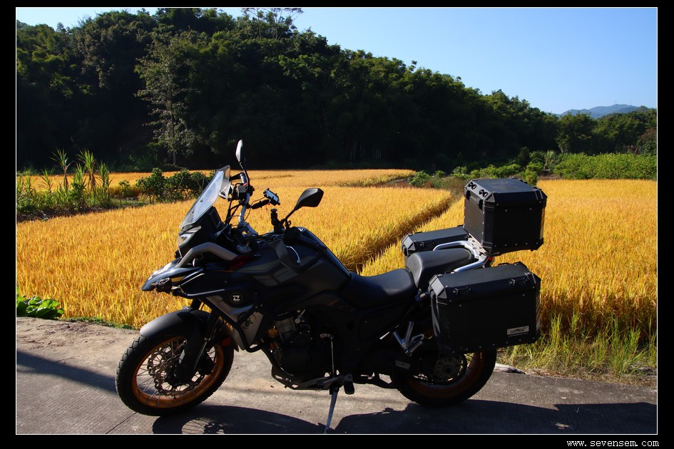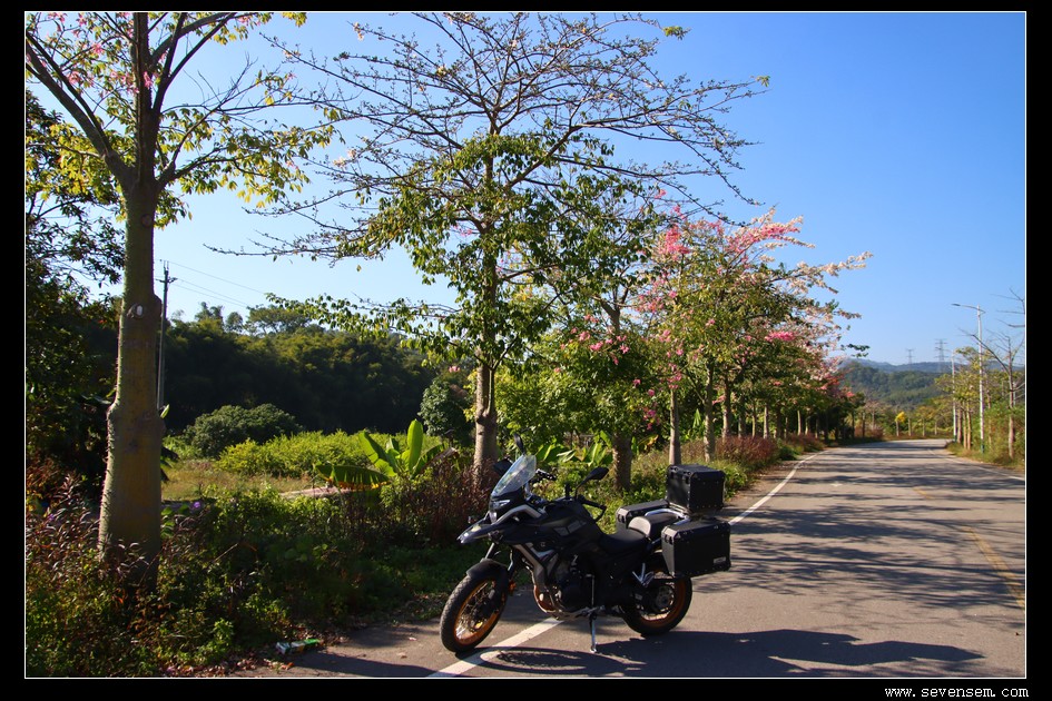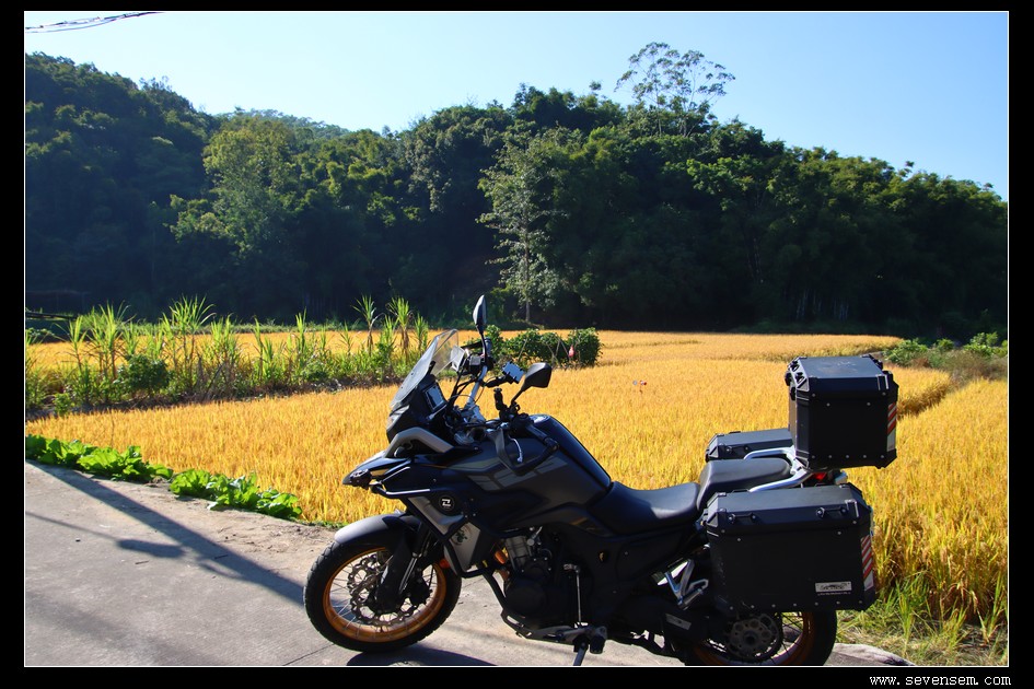从丝苗米稻田公园出来,继续摩旅,正值稻田收割、紫荆花和异木棉盛开的日子,乡村郊野非常舒服。