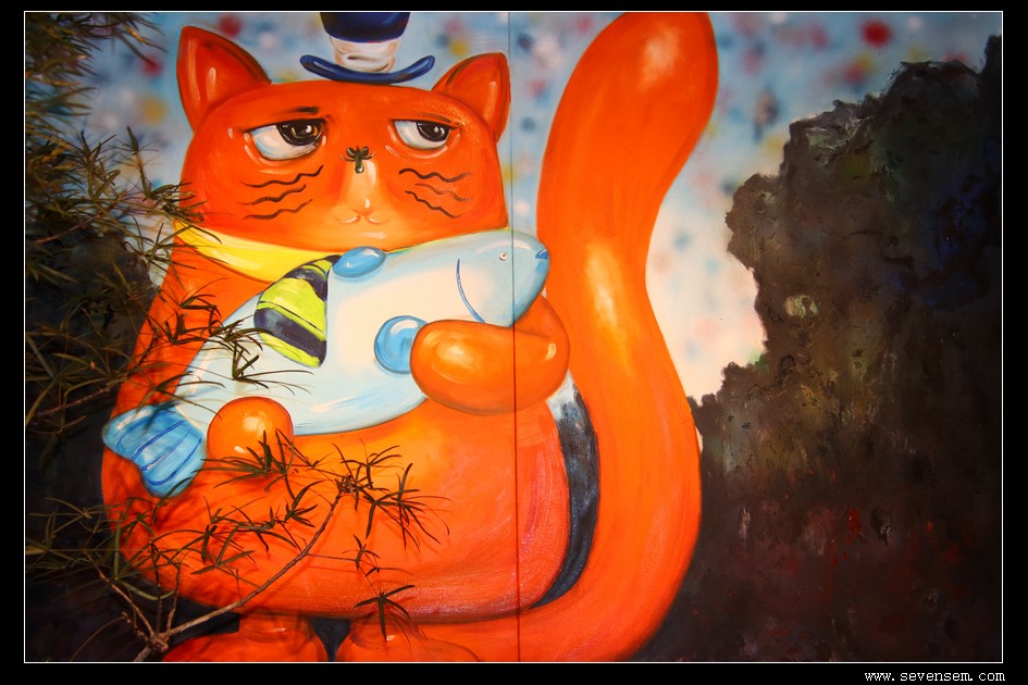 馆内随处可见猫咪IP和艺术品