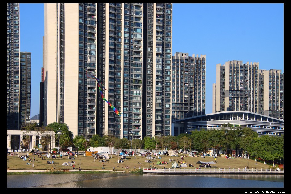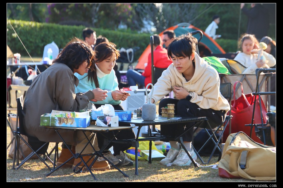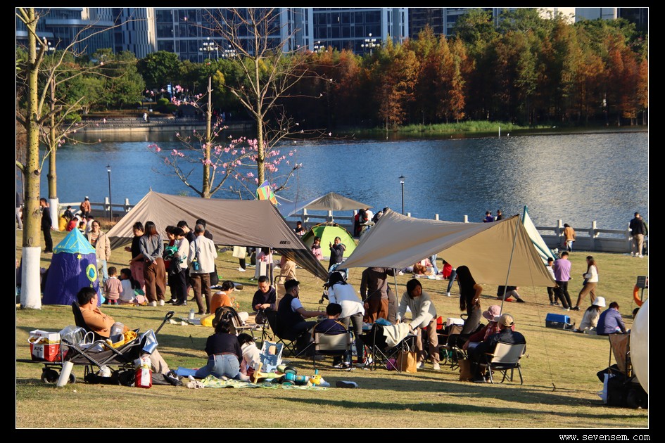 跨年演唱会的歌声还在脑海回响,元旦假期继续出发,凤凰湖公园全是露营的人。