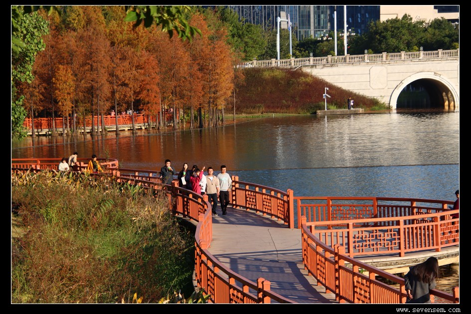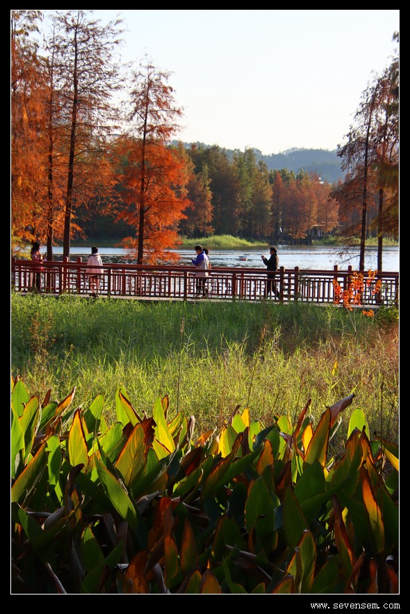 刚到就被岸边的落羽杉惊艳到!层层叠叠的红黄色枝叶倒映在湖面,沿着1.8公里的亲水木栈道穿行,像闯进了浓墨重彩的油画里。