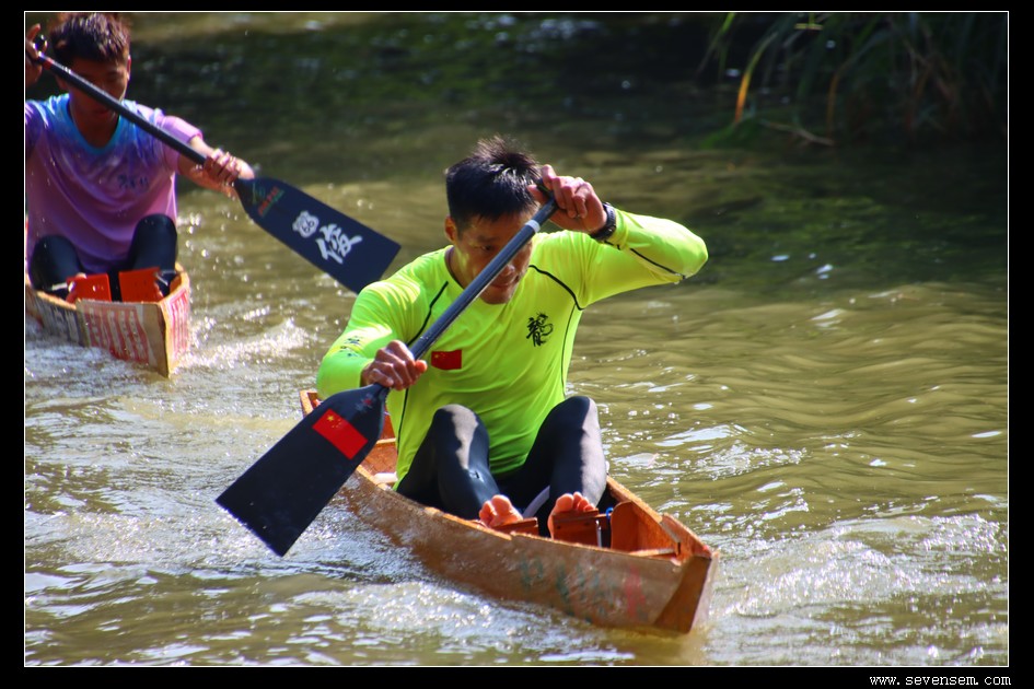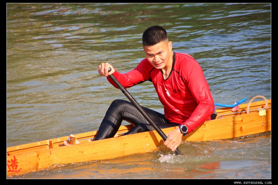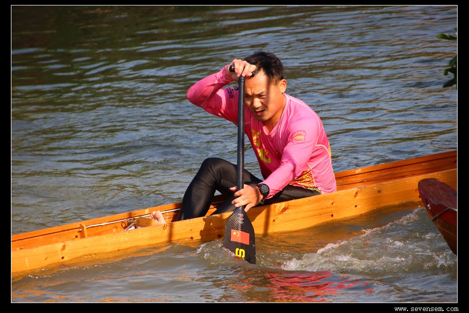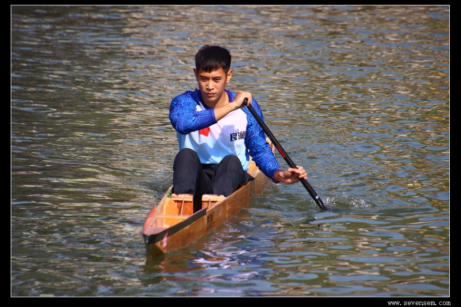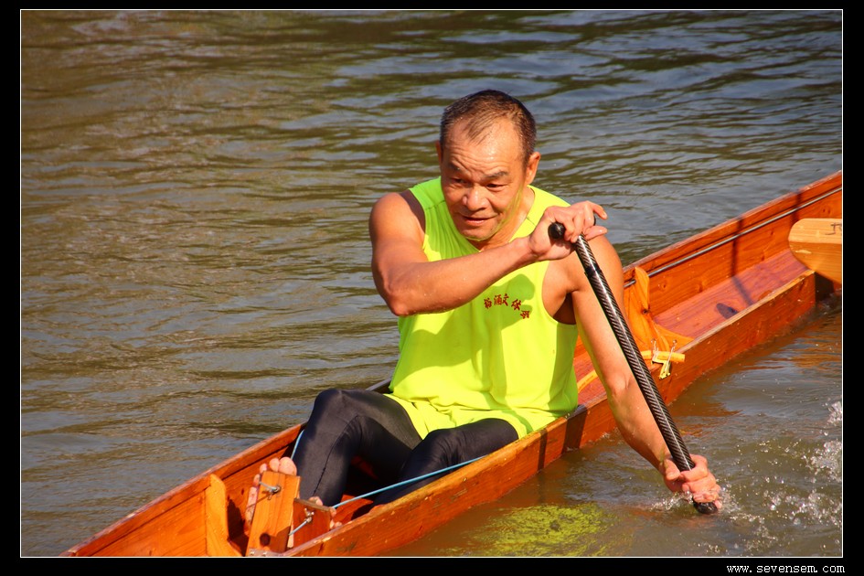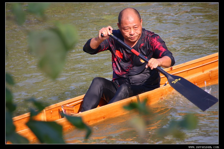 没有队友的并肩,没有集体的呐喊,只有选手孤身一人,立于窄长的龙舟之上,脚踩方向,手挥舞桡桨,在水面上划出一道道凌厉的弧线。