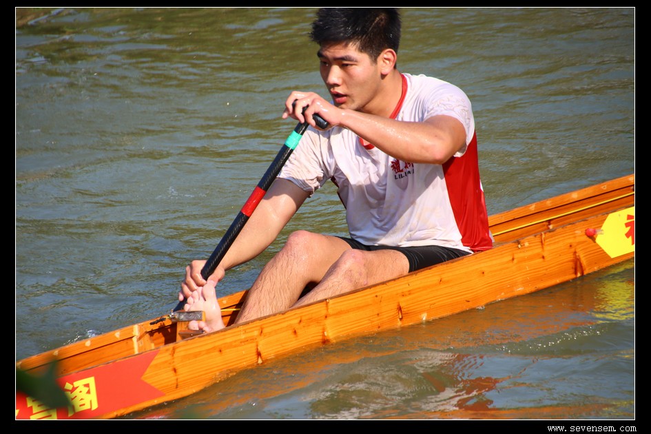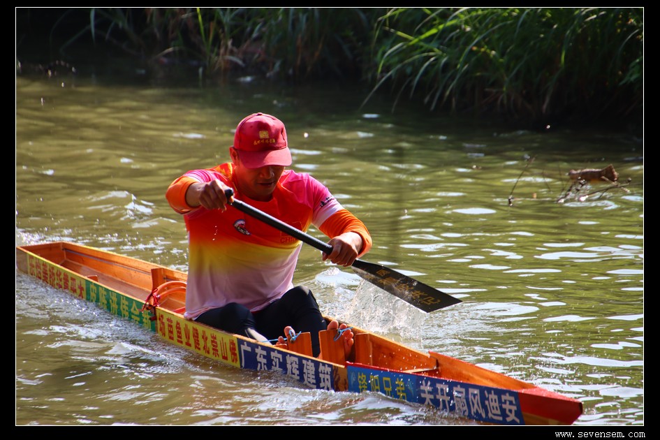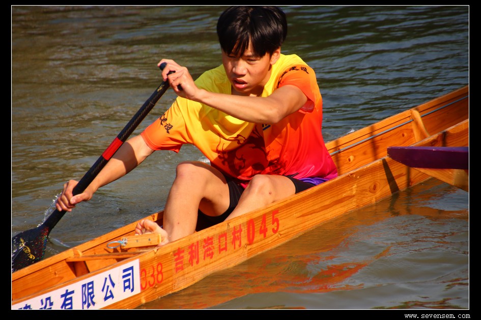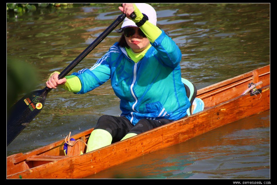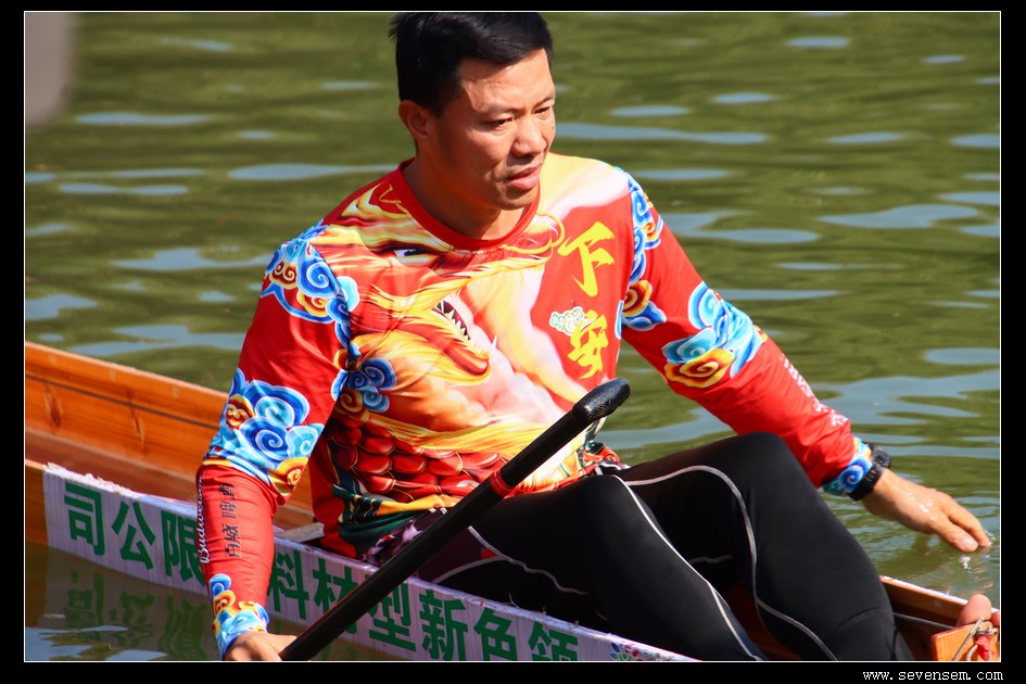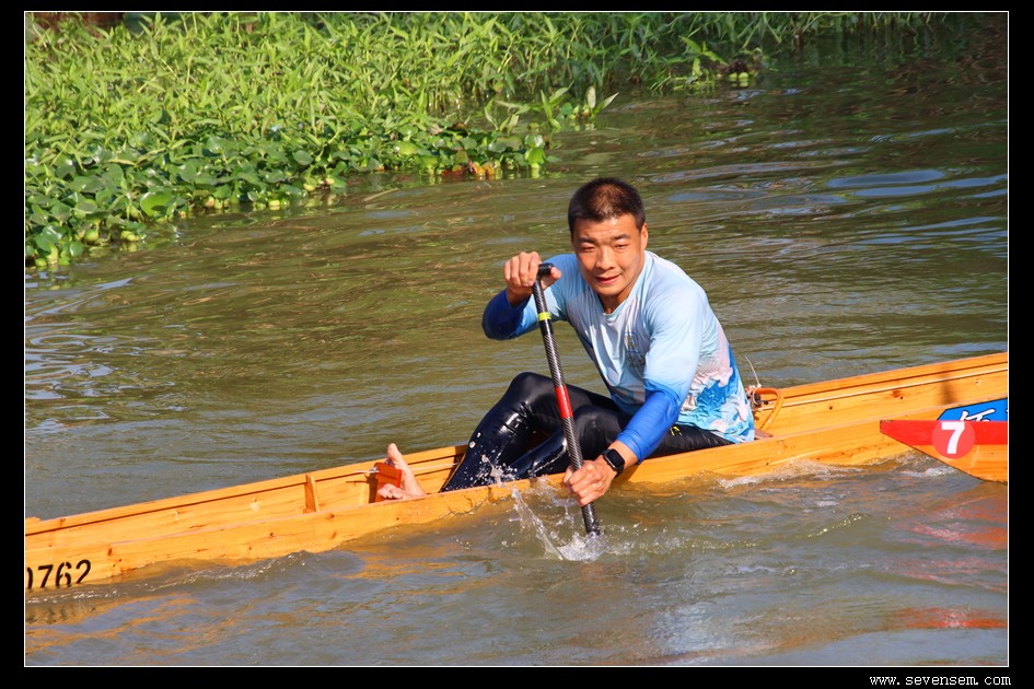 没有队友的并肩,没有集体的呐喊,只有选手孤身一人,立于窄长的龙舟之上,脚踩方向,手挥舞桡桨,在水面上划出一道道凌厉的弧线。