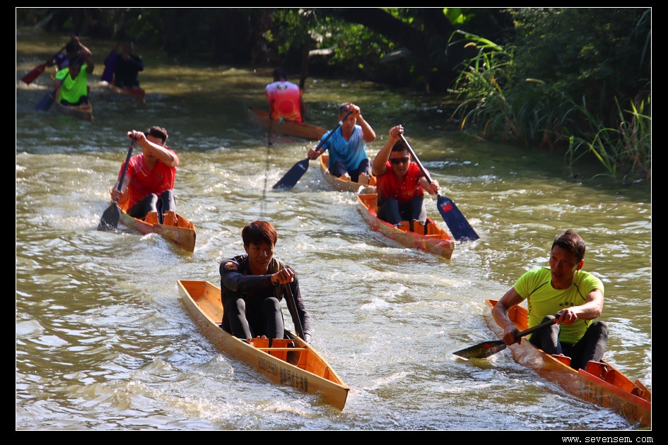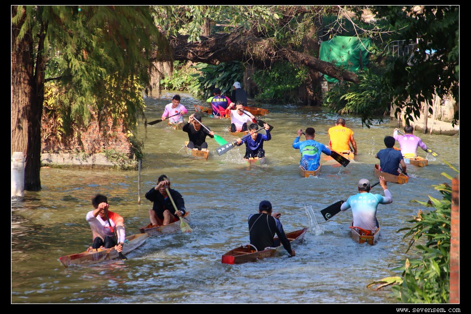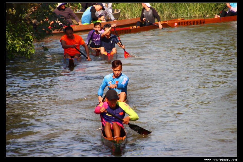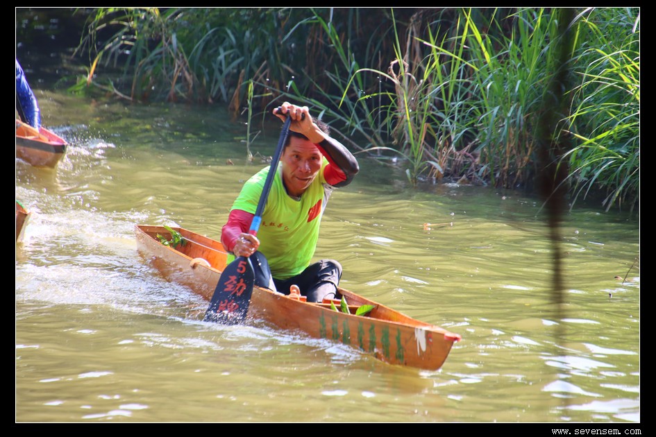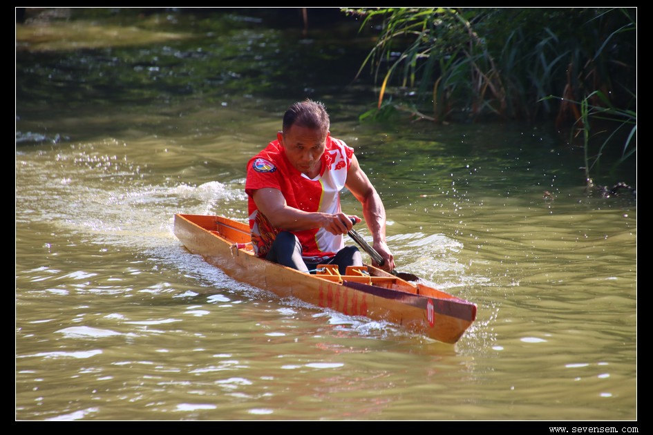 单人龙舟,当地人叫龙虱或者单鸡,窄身、尖头、平尾,最早是水乡人出行的工具,后来慢慢演变成了竞技赛事。