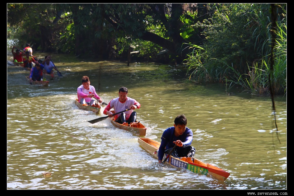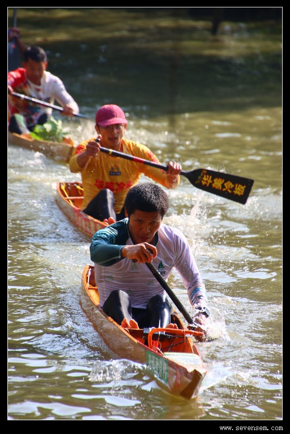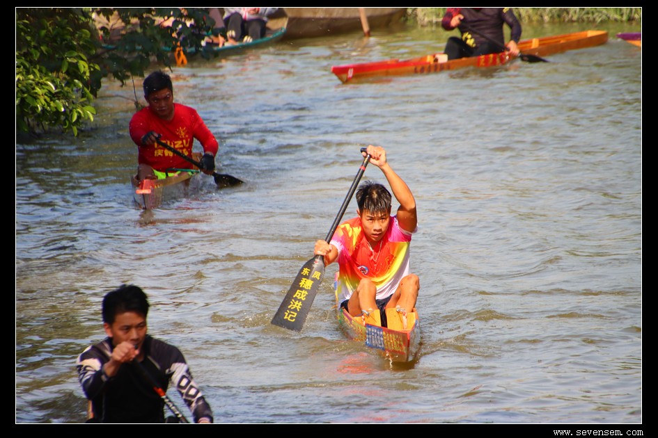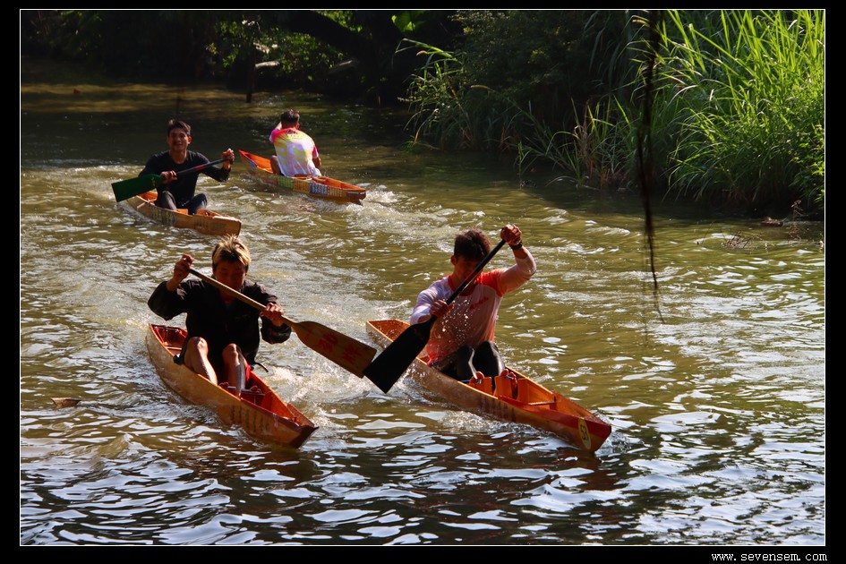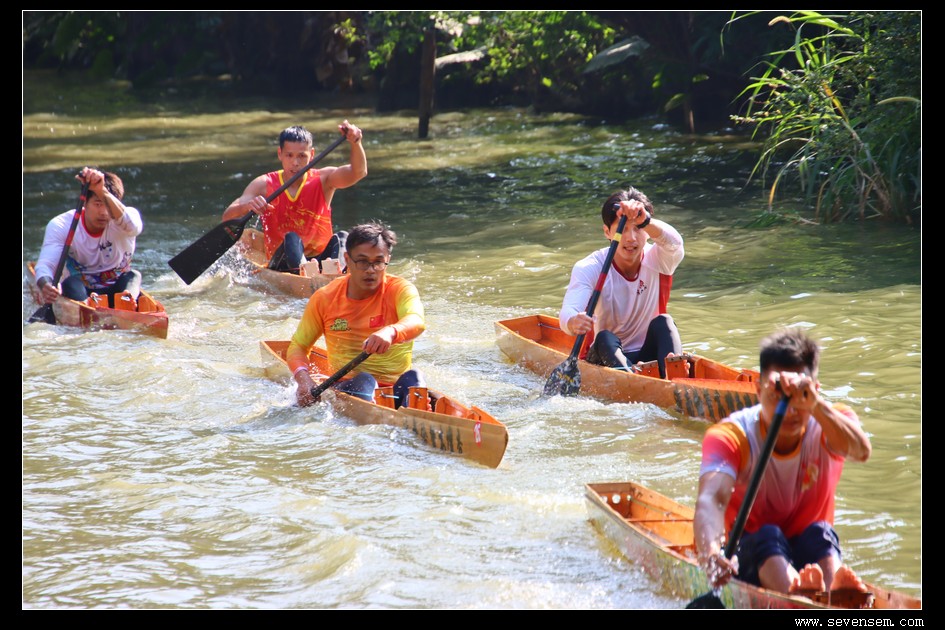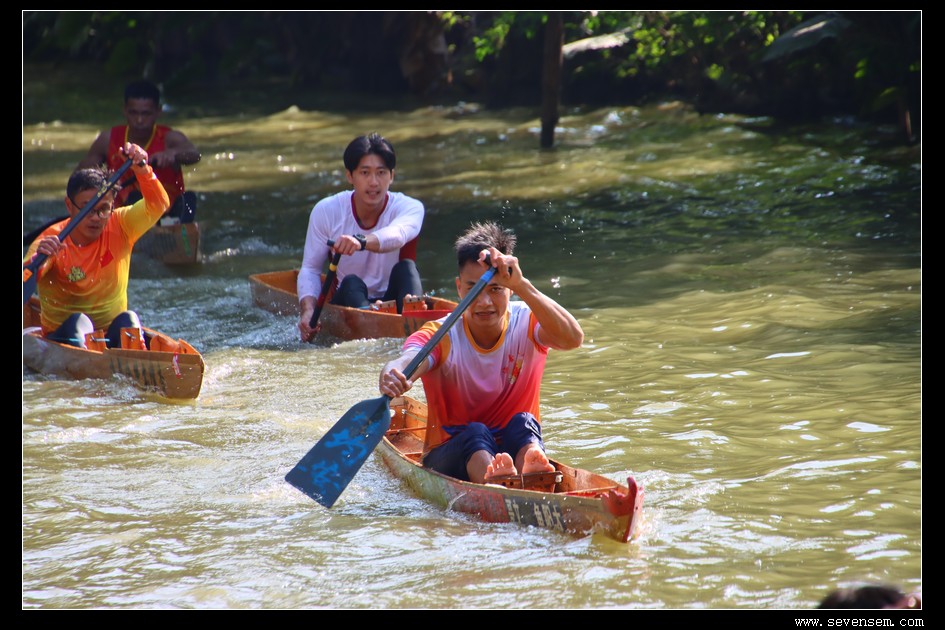 单人龙舟,当地人叫龙虱或者单鸡,窄身、尖头、平尾,最早是水乡人出行的工具,后来慢慢演变成了竞技赛事。