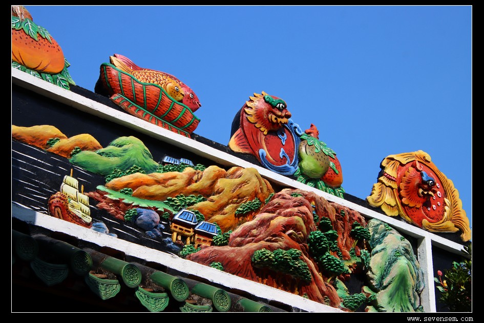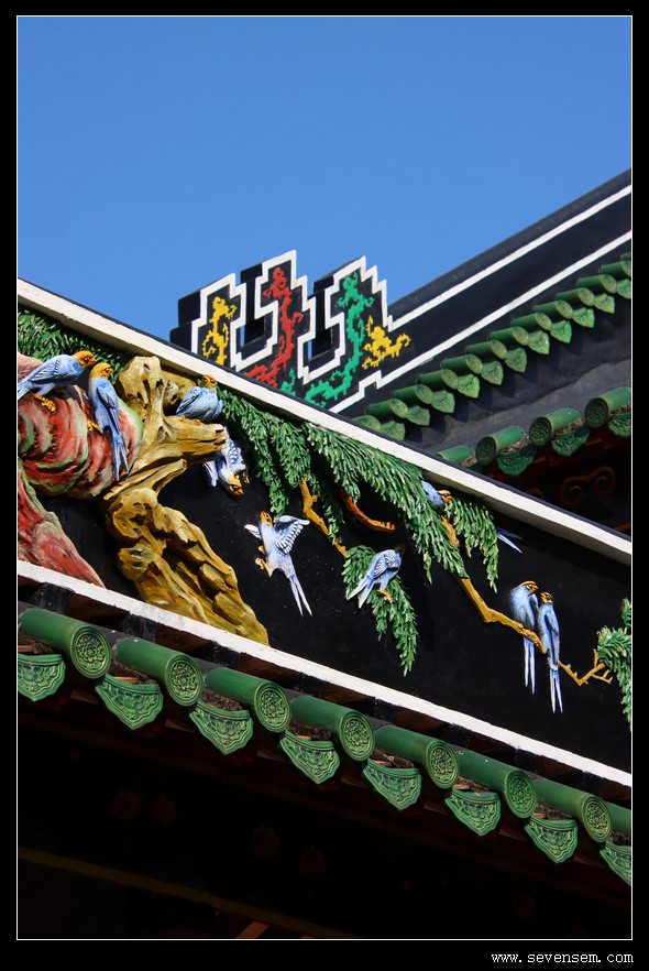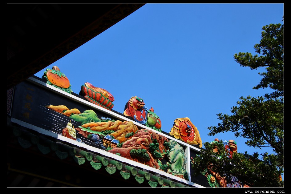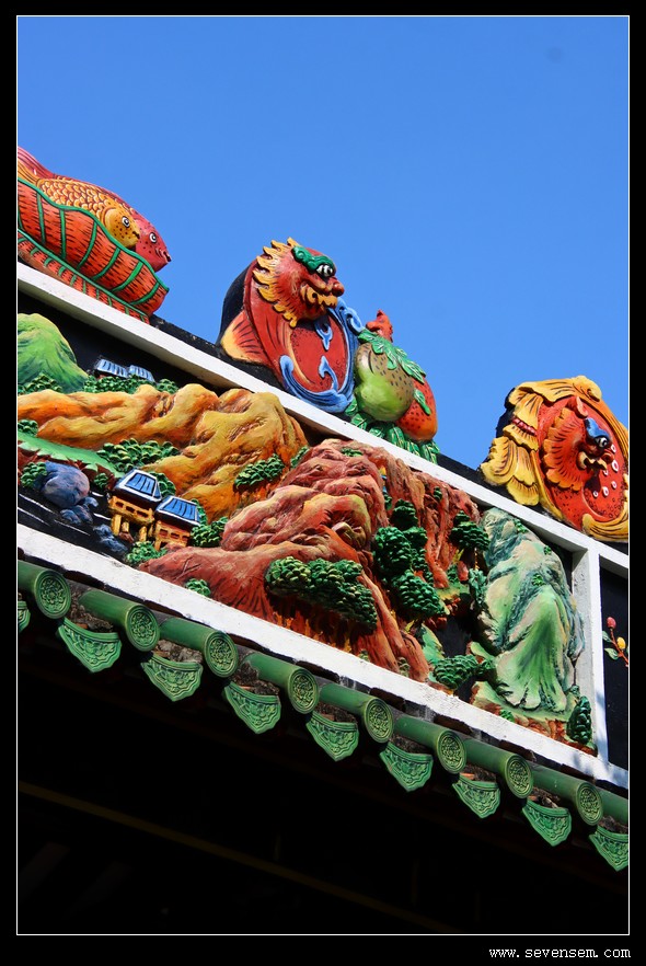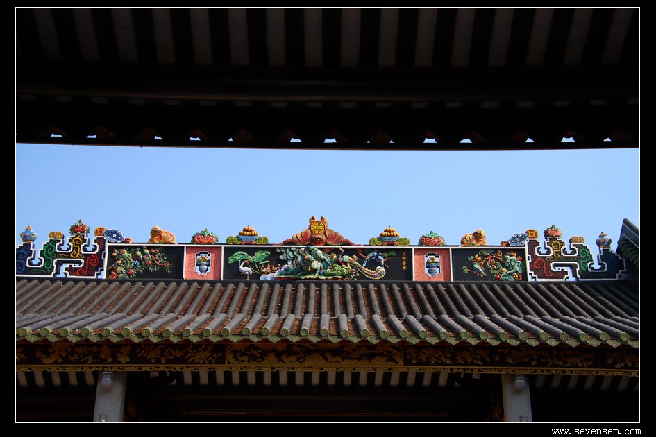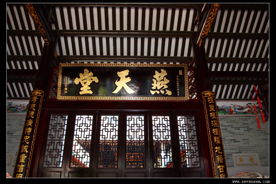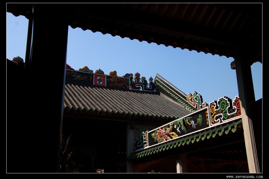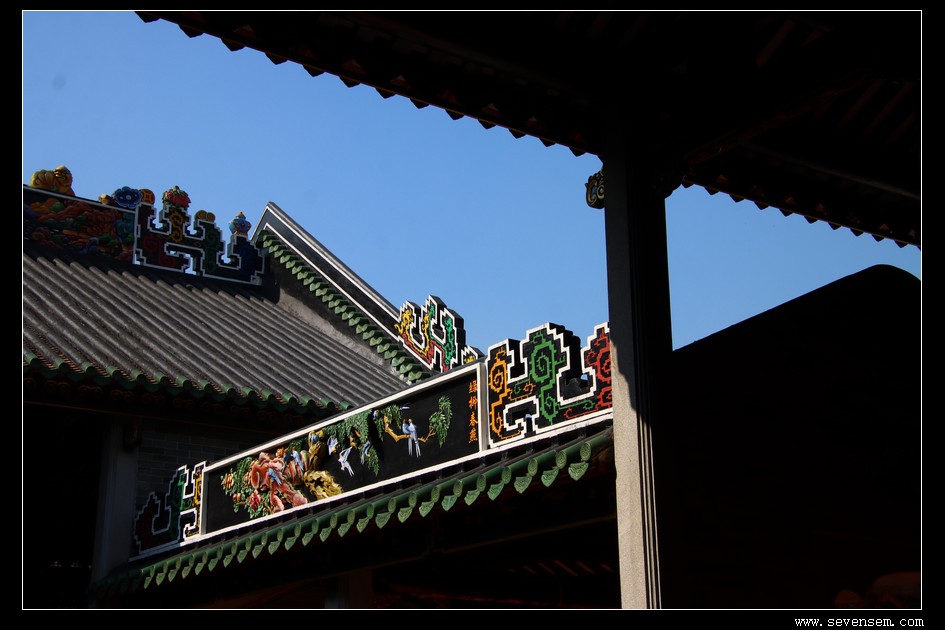祠堂三进两廊两天井的格局庄重大气,青砖碧瓦映着水光,恍惚间像穿越回了旧时岭南。