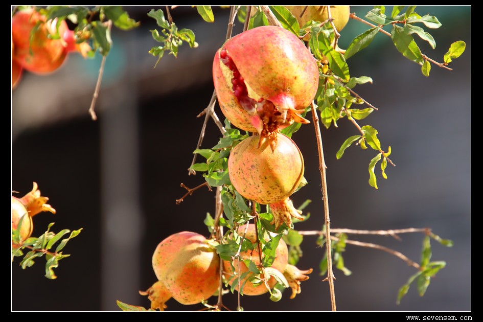 第一进的天井旁,石榴树枝繁叶茂,挂着红彤彤的果实,寓意这里的村民将会多子多福。