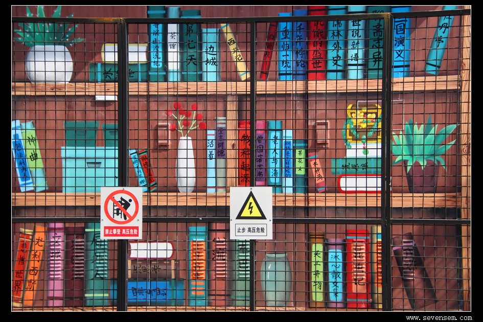 看到变压站电箱改造成的复古书屋,立刻锁车打卡。