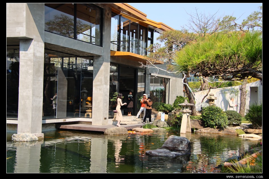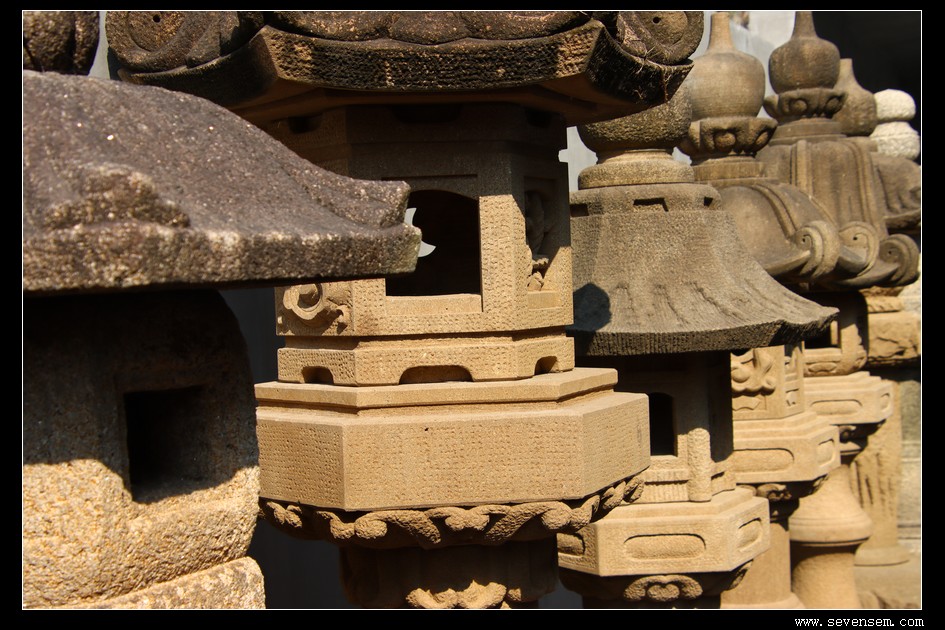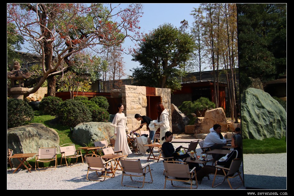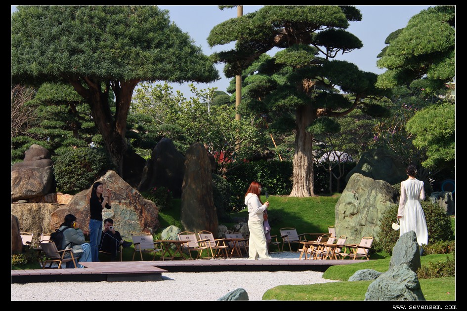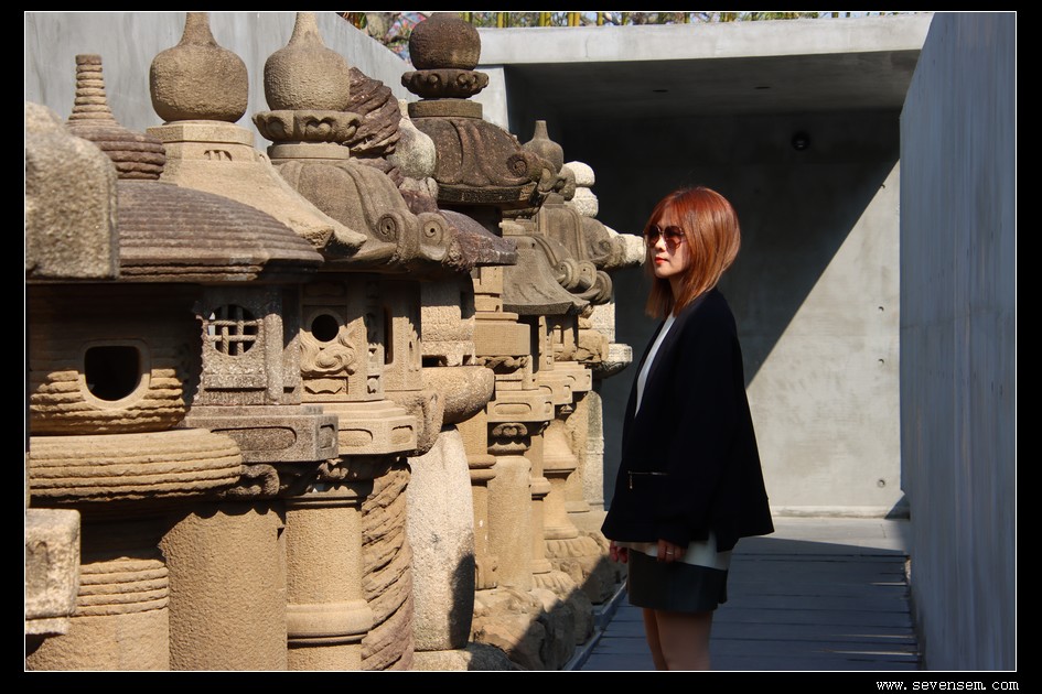 一脚踏入园区,就被列队相迎的石灯笼撞个满怀——这些源自唐宋的中国老古董,褪去繁复装饰,只留简约线条,在光影中诉说着千年故事。