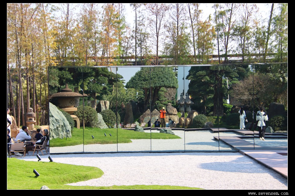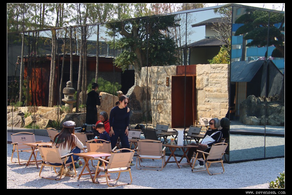 藏在角落的镜面装置,穿过去便隔绝了外界喧嚣,只剩流水潺潺、松影婆娑,仿佛一秒切换到避世桃源。