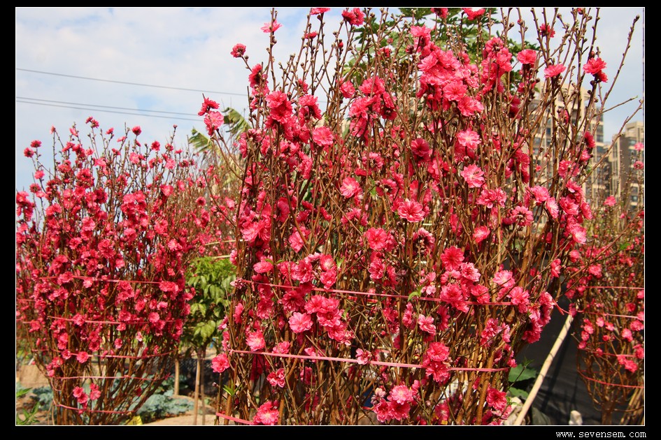 百年花农精心养护的桃花,寓意花开富贵、鸿运当头、桃花运旺,是广州人过年必买的年花。