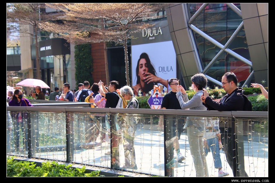 天台花园藏着一片梦幻桃花林,粉雾花海映衬CBD摩天大楼,传统浪漫与现代都市同框。