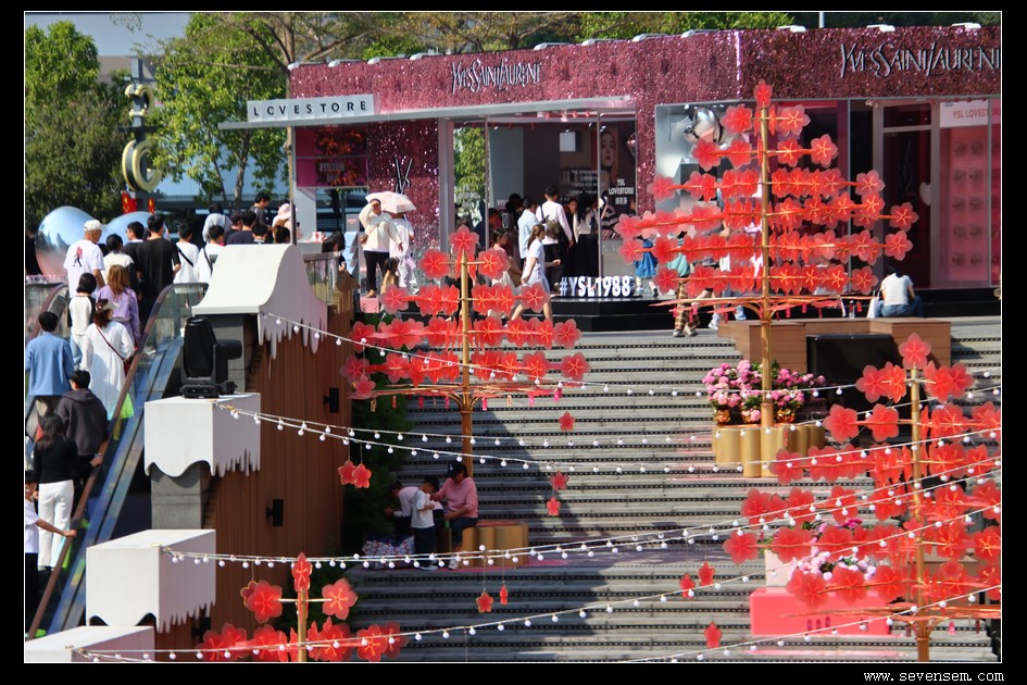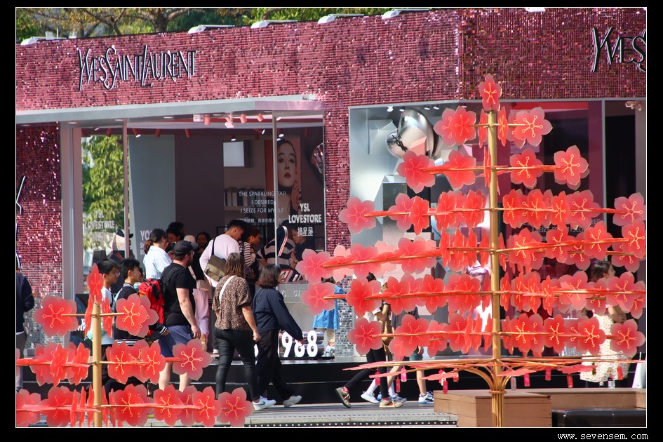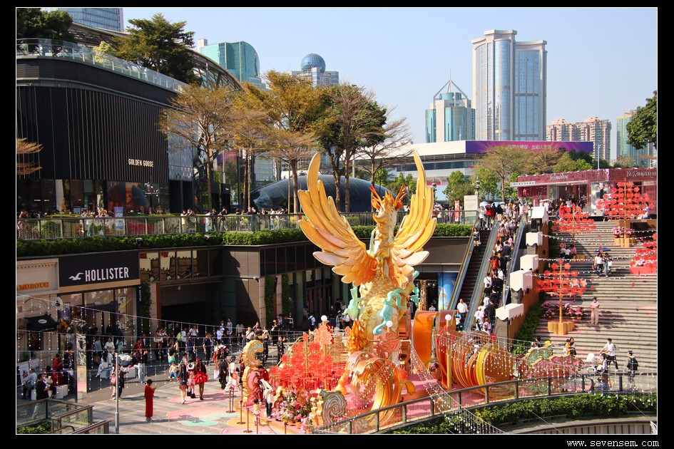 商场内外红灯笼、鎏金装饰、动态灯影层层递进,从负一层广场到空中连廊,每一处都精心布置。哪怕春节前夕28度高温,室内室外总有一片喜欢的天地。