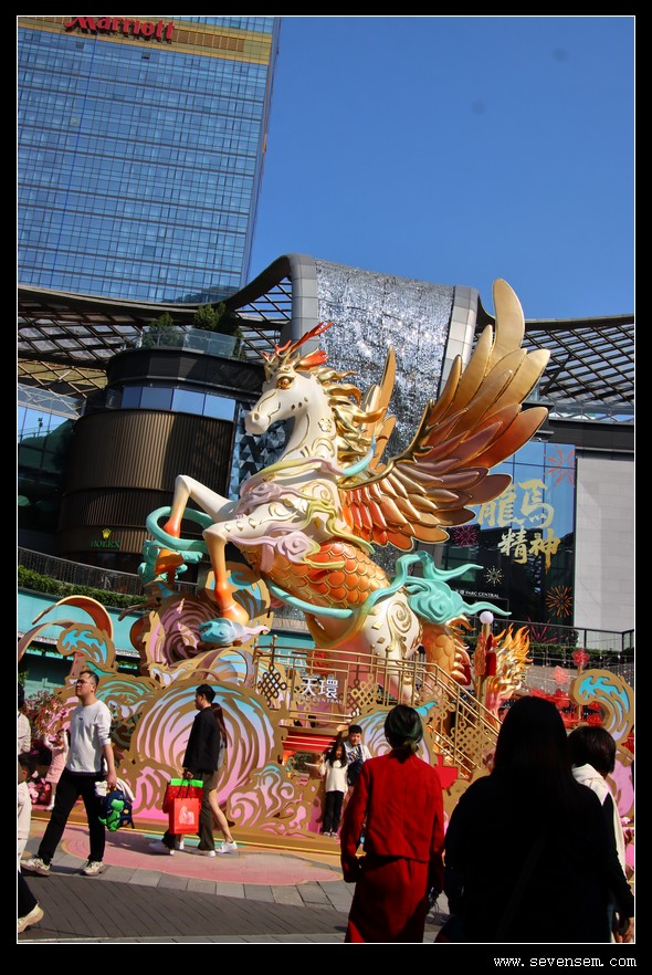 巨型鎏金龙马霸气坐镇新中轴,身披12000片24K金箔、168片龙鳞寓意一路发。