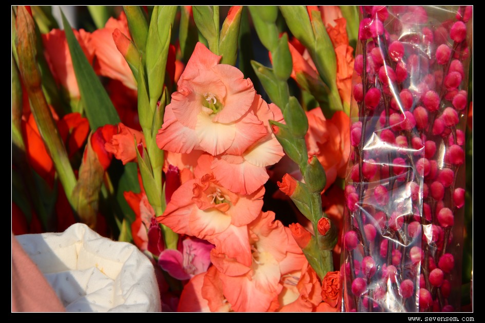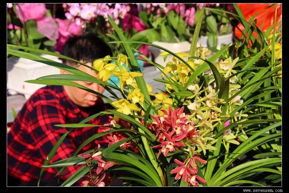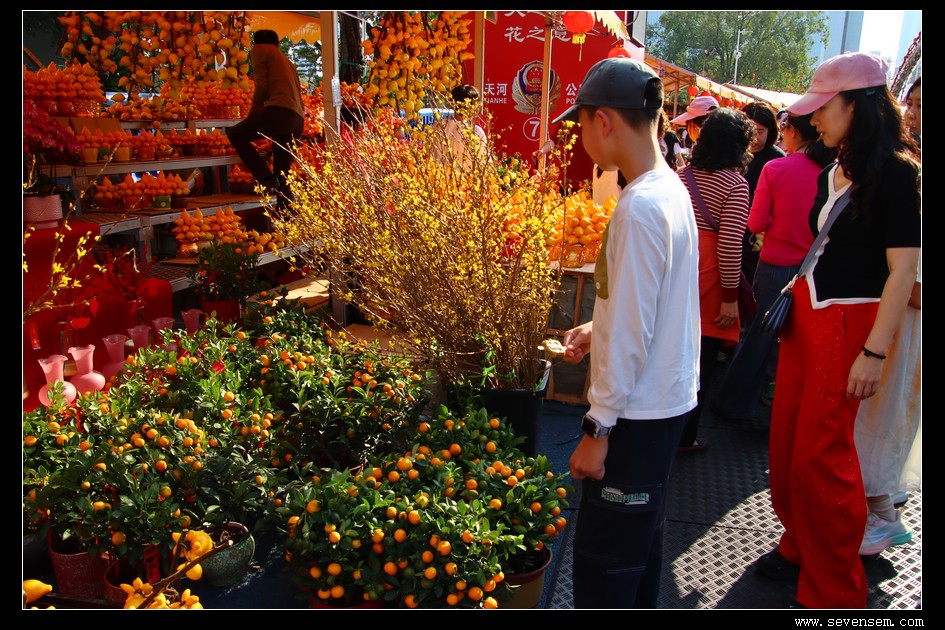年桔、桃花、蝴蝶兰、水仙、五代同堂,红的粉的紫的,满眼都是春天气息。
