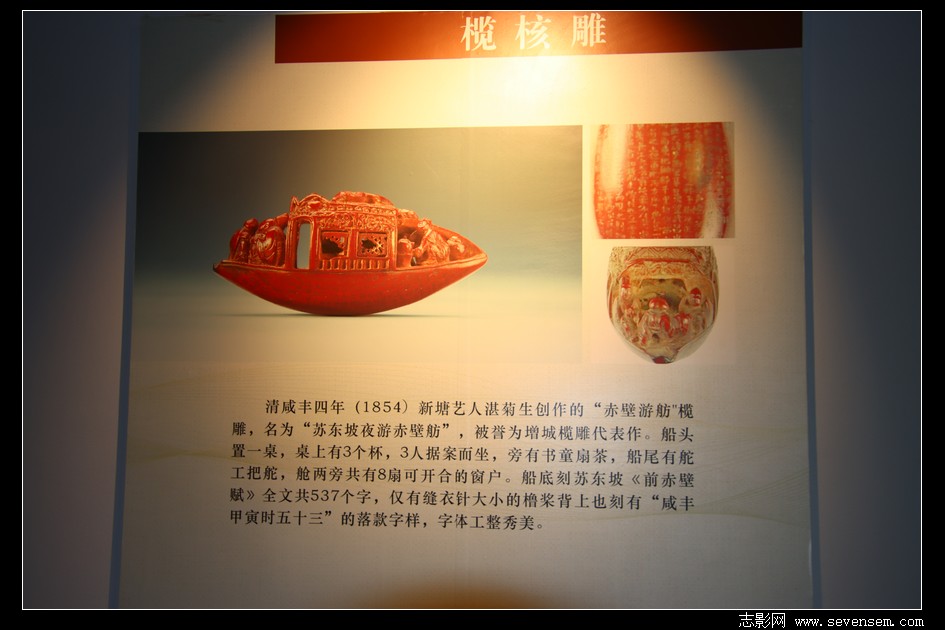 一枚小小的乌榄核,竟被雕琢成一艘精致的画舫,船窗可开合,船内人物栩栩如生,更在方寸之间刻下《前赤壁赋》全文,刀工细腻、巧夺天工,堪称“广东一宝”。