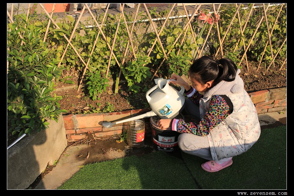 除草也要小心啊,小心爸爸揍你,如果你铲掉菜苗的话。