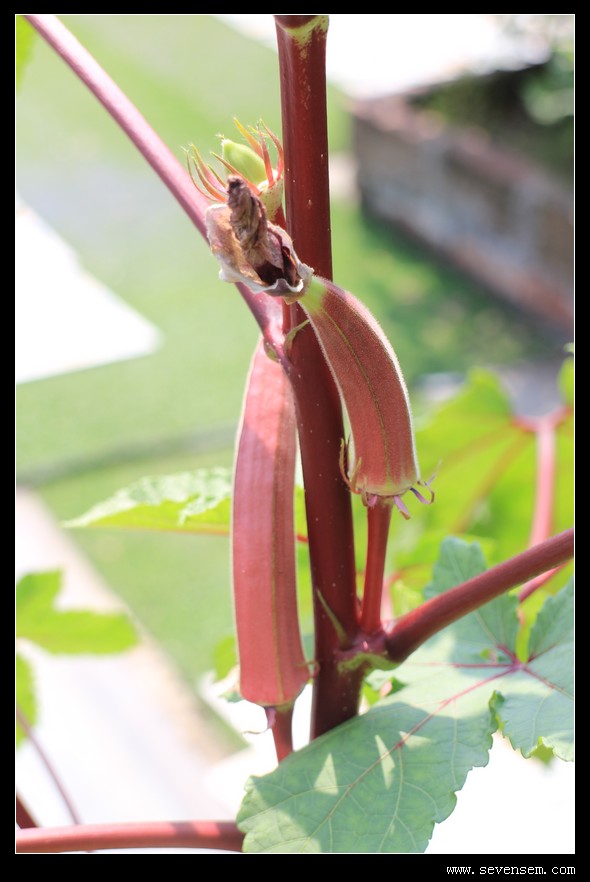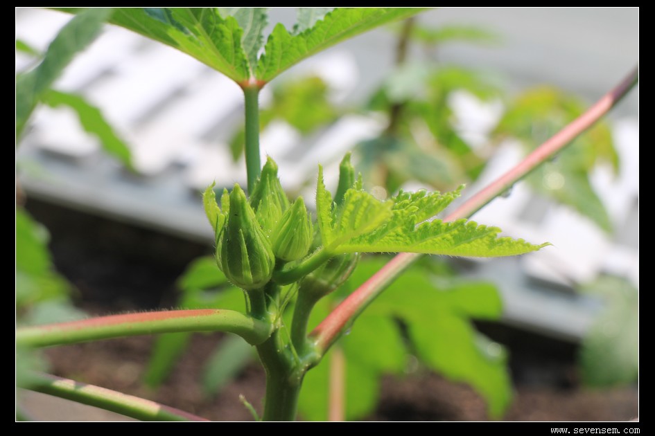 之前种得太密集,肥力不足,现在的秋葵争气多了。