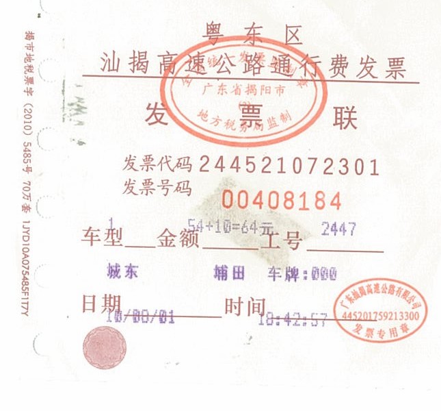 自驾到各地的高速公路、桥梁的通行费票都会留存,扫描上来记录一下去过的地方。