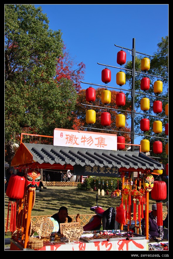 徽园市集里热闹非凡,琳琅满目的徽州特产与非遗手工艺品让人目不暇接。