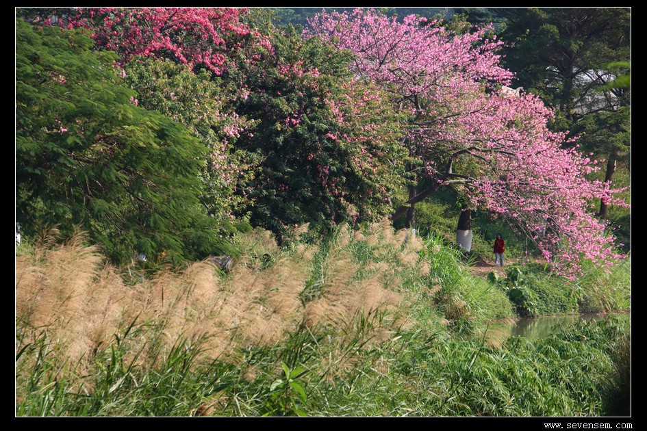 冬天这里肯定系异木棉和羊蹄甲盛开的时候,粉色和紫色的花海沿着河岸蔓延,骑行在花丛中仿佛闯入童话世界。