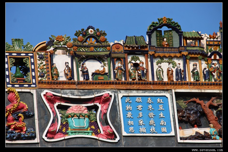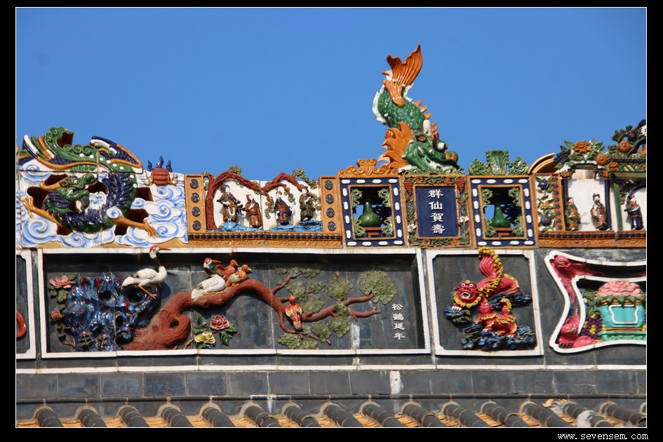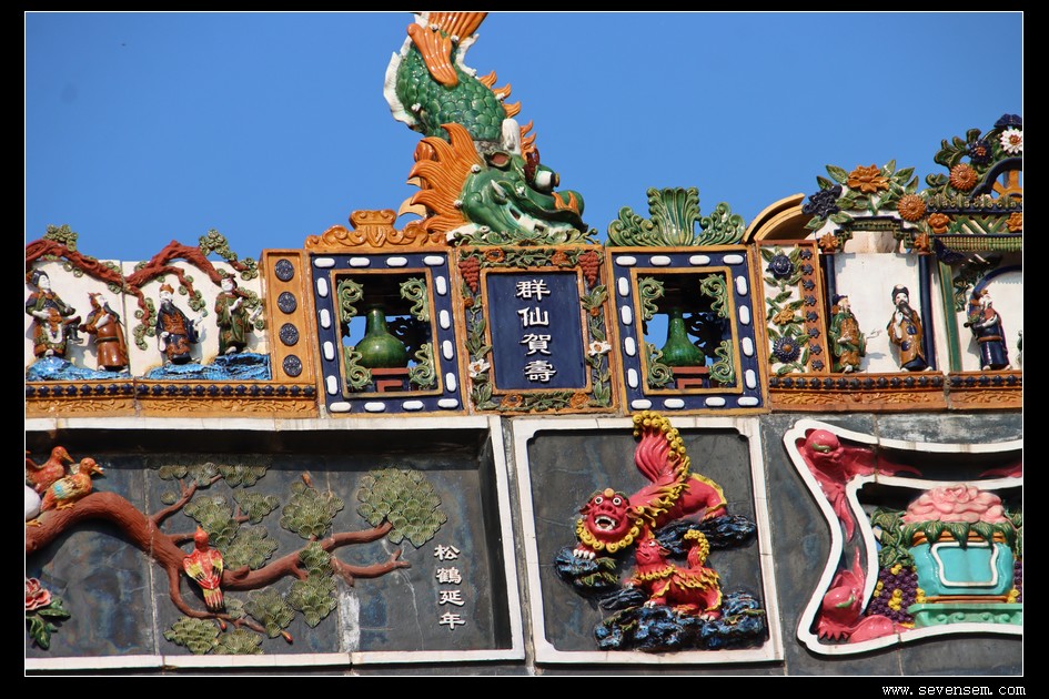 砖雕里的吉祥纹样精雕细刻,木雕的花草虫鱼栩栩如生,灰雕的麒麟献瑞寓意深远,彩瓷图案里藏着一个个劝人奋进的家族典故。