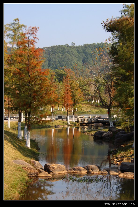 阳光正好,微风不燥,河水清澈见底,倒映着红杉的影子,随手一拍都是大片。