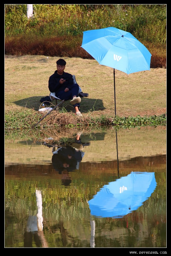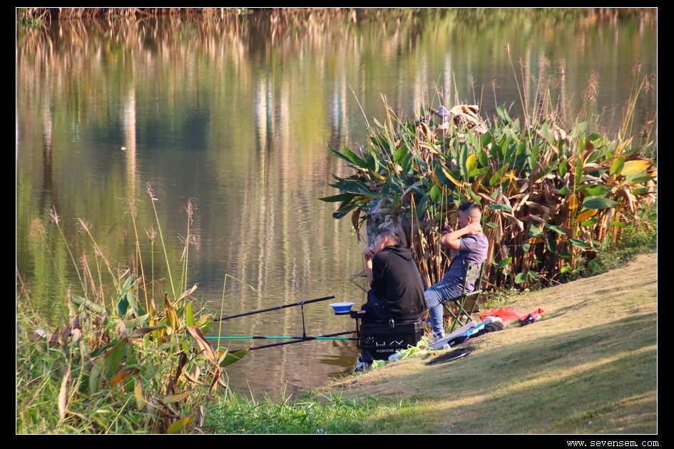 路过的行人放慢了脚步,钓鱼的大哥悠闲地坐着,连狗狗都在草地上撒欢。