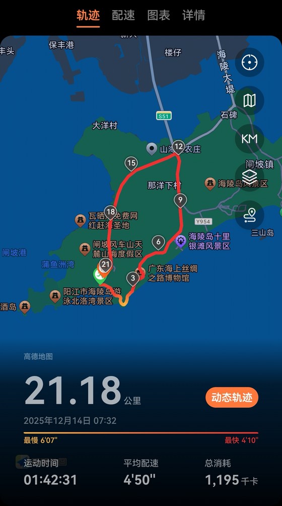 比起上两周的黄山马拉松,这次的海陵岛马拉松又PB了1分钟,非常让人兴奋。