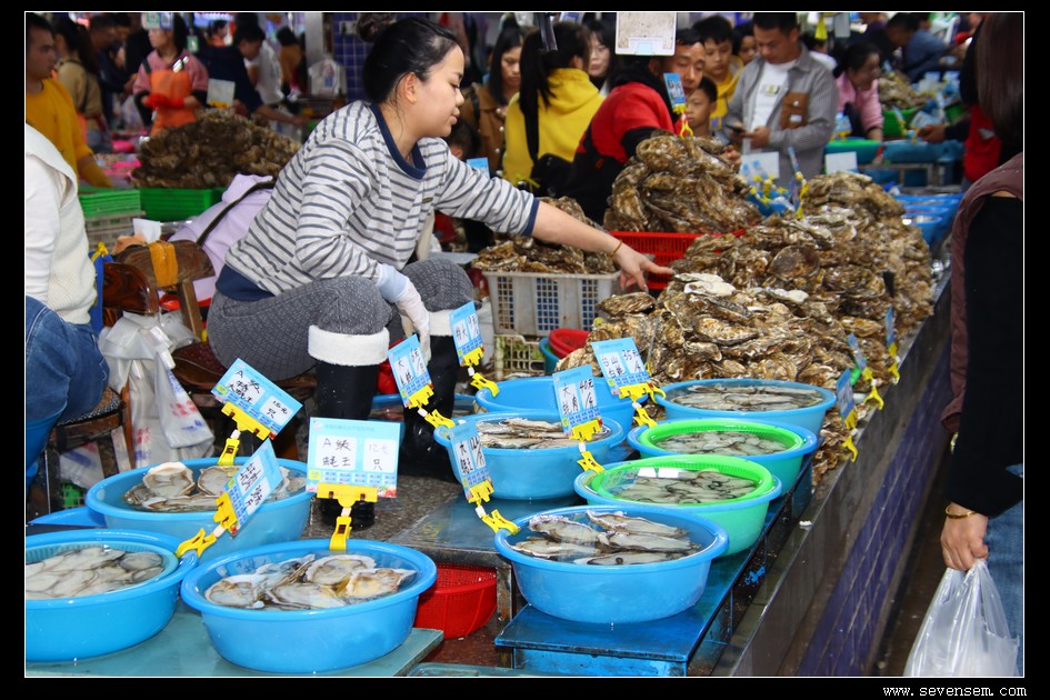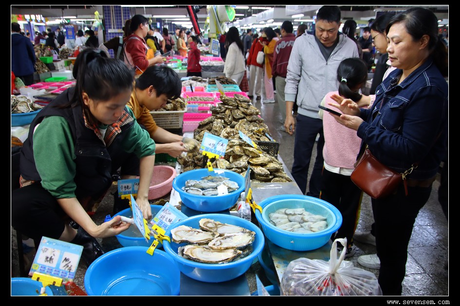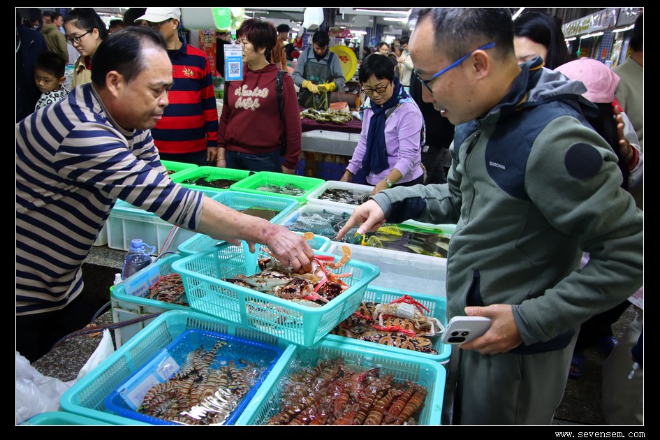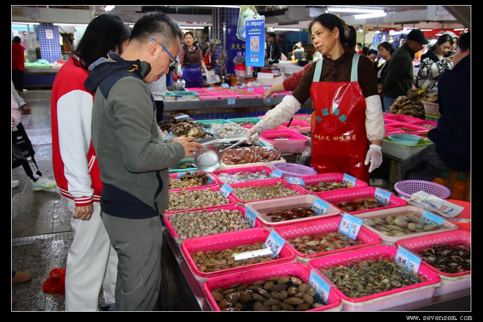 粤语与普通话交织的叫卖声此起彼伏,摊主们热情地介绍着当日鲜货,有的游客俯身凑近水箱挑拣,有的拿着刚买的海货咨询烹饪技巧,满满都是生活气息。