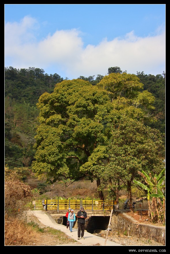 藏在林间的石墩路牌和古朴泥砖房,随手一拍都是古风大片既视感。