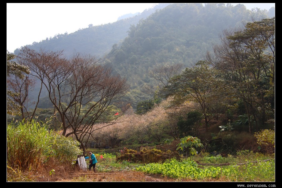 这里没有拥挤的人潮,没有商业化的摊位,只有老枝盘曲的梅树、蜿蜒的山间小路。