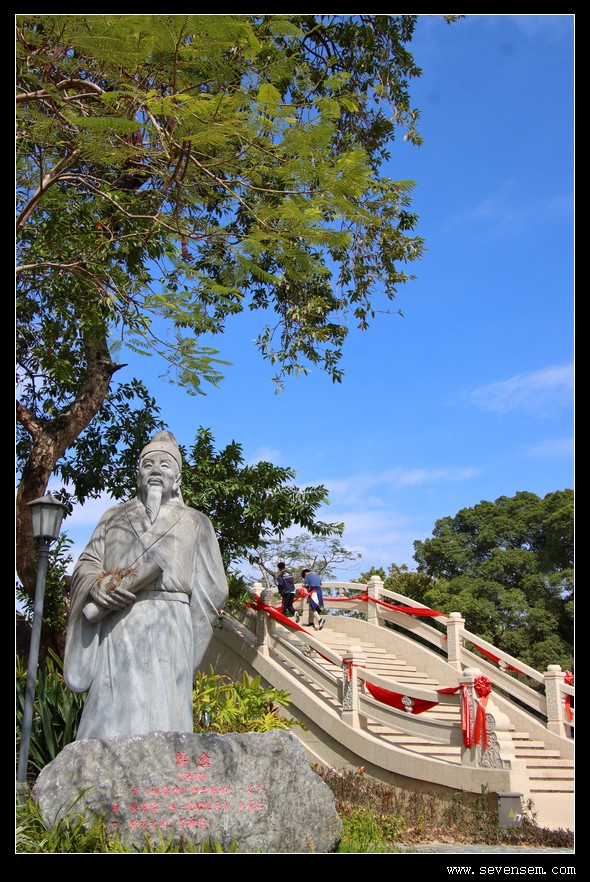 一水两岸,一湖一岛,鹊桥连起湖心秘境,粤剧大戏台藏于绿树浓荫间。
