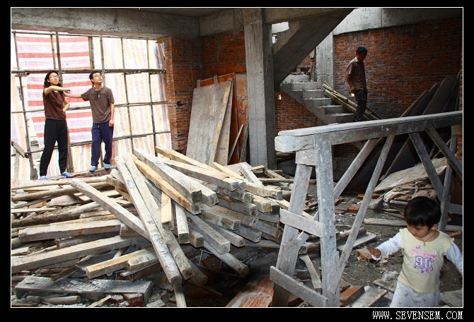Mar.11 新屋准备堵第五层的水泥啦,厅中间空出来的地方是复式结构,4-5楼是相通的。